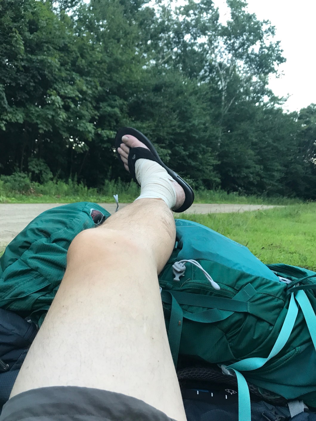 “Snap, crackle, pop” are the sounds Rice Krispies make when you pour milk on them. They are also the sounds you hear when your 208 lbs plus 40 in your pack come down in one step on a foot that has been rolled over such that your ankle bone, instead of your boot sole, is your contact point with the trail. It was an exceptionally dumbass move: I was humming along at a good pace, came to a relatively flat stretch, took out my phone to cue up some listening, and did not pay enough attention to foot placement. I heard three pops and went down in a heap, in the process bending my trekking pole and twirling over on my pack – coming to rest like a beetle on its back. My first thought was “that’s it – I am done.” My second was “how the hell am I getting out of here,” as there had been no trail traffic, no clearings to land a helicopter, and it was (as I subsequently determined) 6 miles full of ascents/descents to the nearest road. Logic forced the third thought: “you’re hiking on this thing, so get your ass off the ground and see how bad it is.”