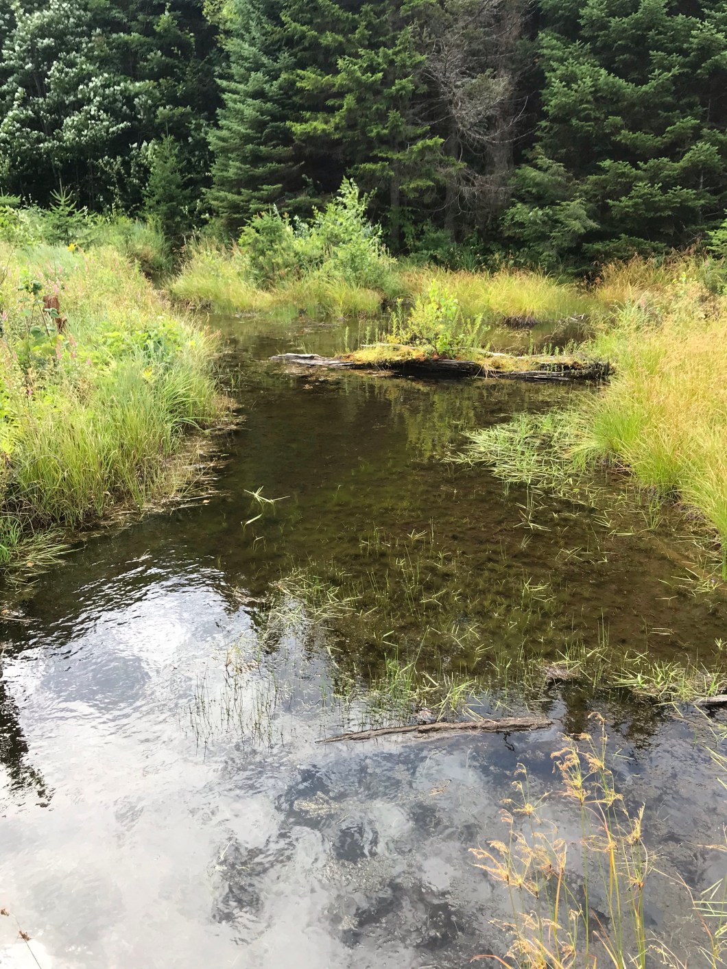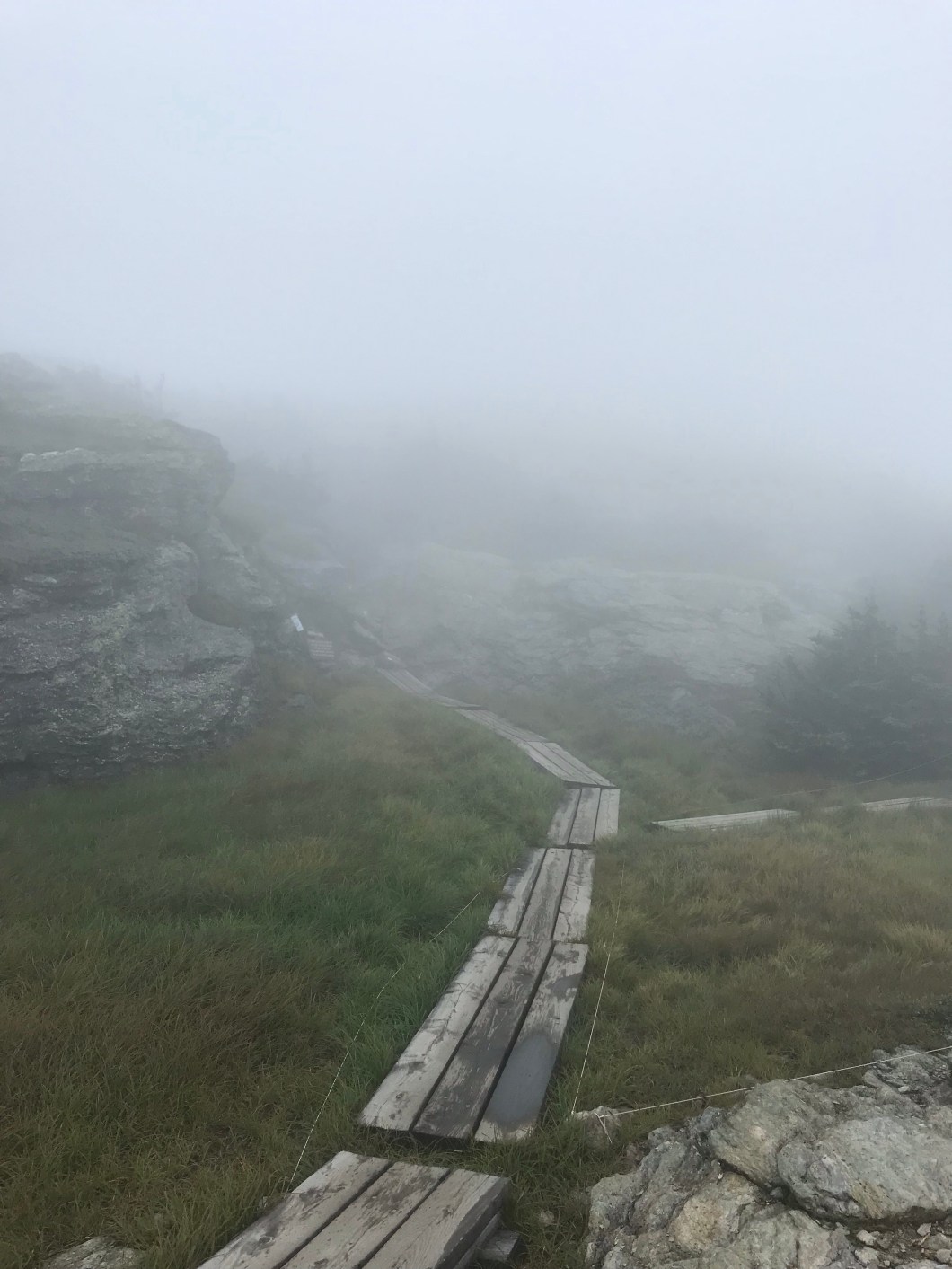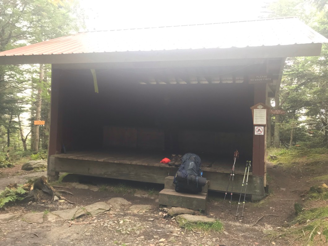 Where I’m going with this is that things would have been different if we had started, like last year, in S VT – it’s a lot mellower and you can break the body in and prep it for the tough stuff further north. On Thursday, August 22nd, we started with what might be the toughest descent on the entire trail – off of the Chin and down to the bottom of Smugglers Notch. As all hikers know, descending steep rock ledges is much trickier than ascending, and we were doing it with full packs in fog, which, combined with the recent rain, made it slippery. We picked our way down deliberately, and when we got to the road, ready to ascend the north side of the Notch, it was already 3:00, and our knees, feet, and quads were toast. I’ll cut the whining short by saying we arrived at Sterling Pond, our first overnight, at 7:00, with sun already behind the ridge. That’s 3 miles in a bit less than 4 hours. That’s 7 miles on Day 1, with 5 days remaining to go 67 miles. As we wedged our cramping frames into our bags, we told ourselves we’d done the gnarliest bit, and we’d hit it fresh in the morning.