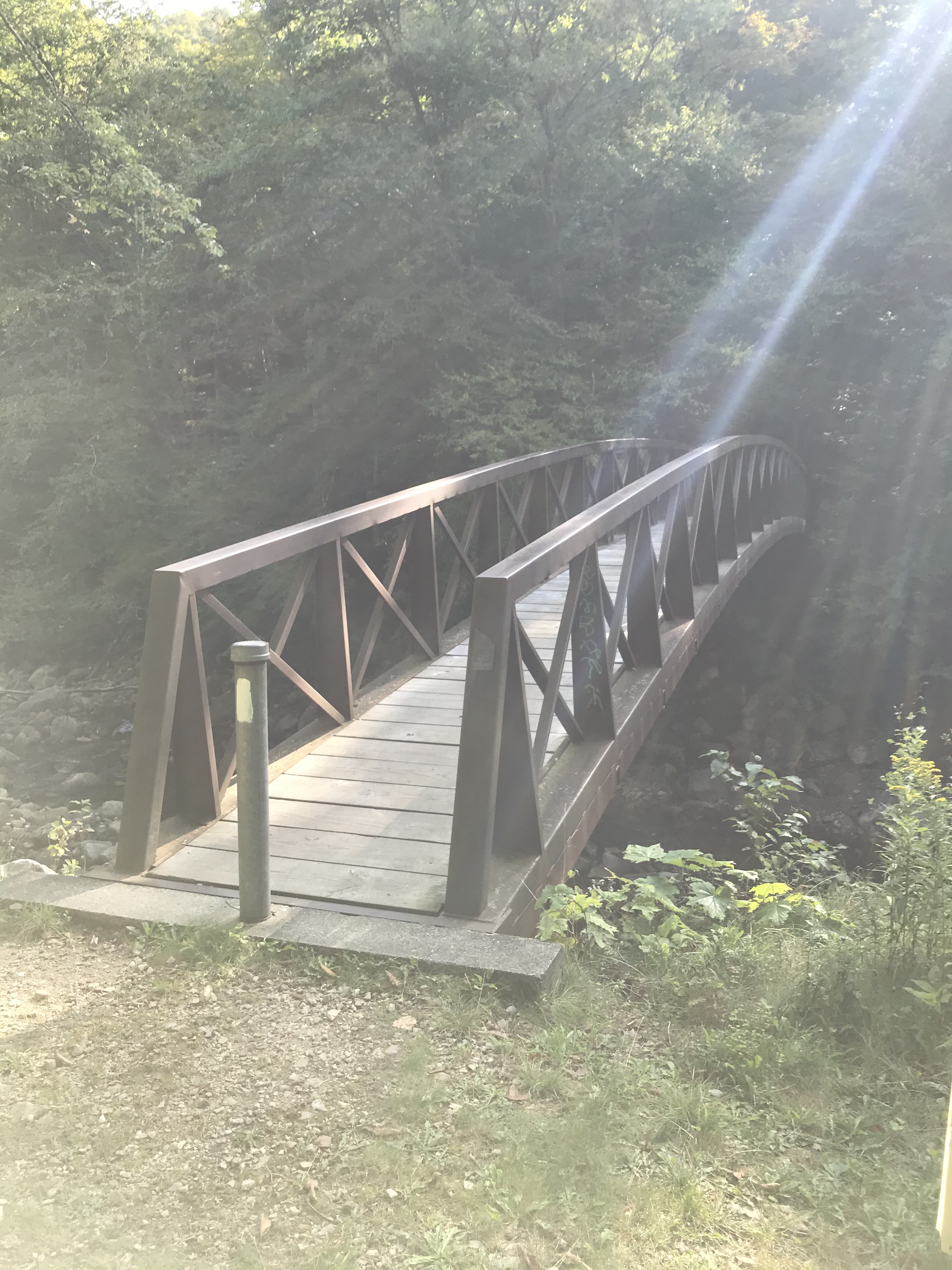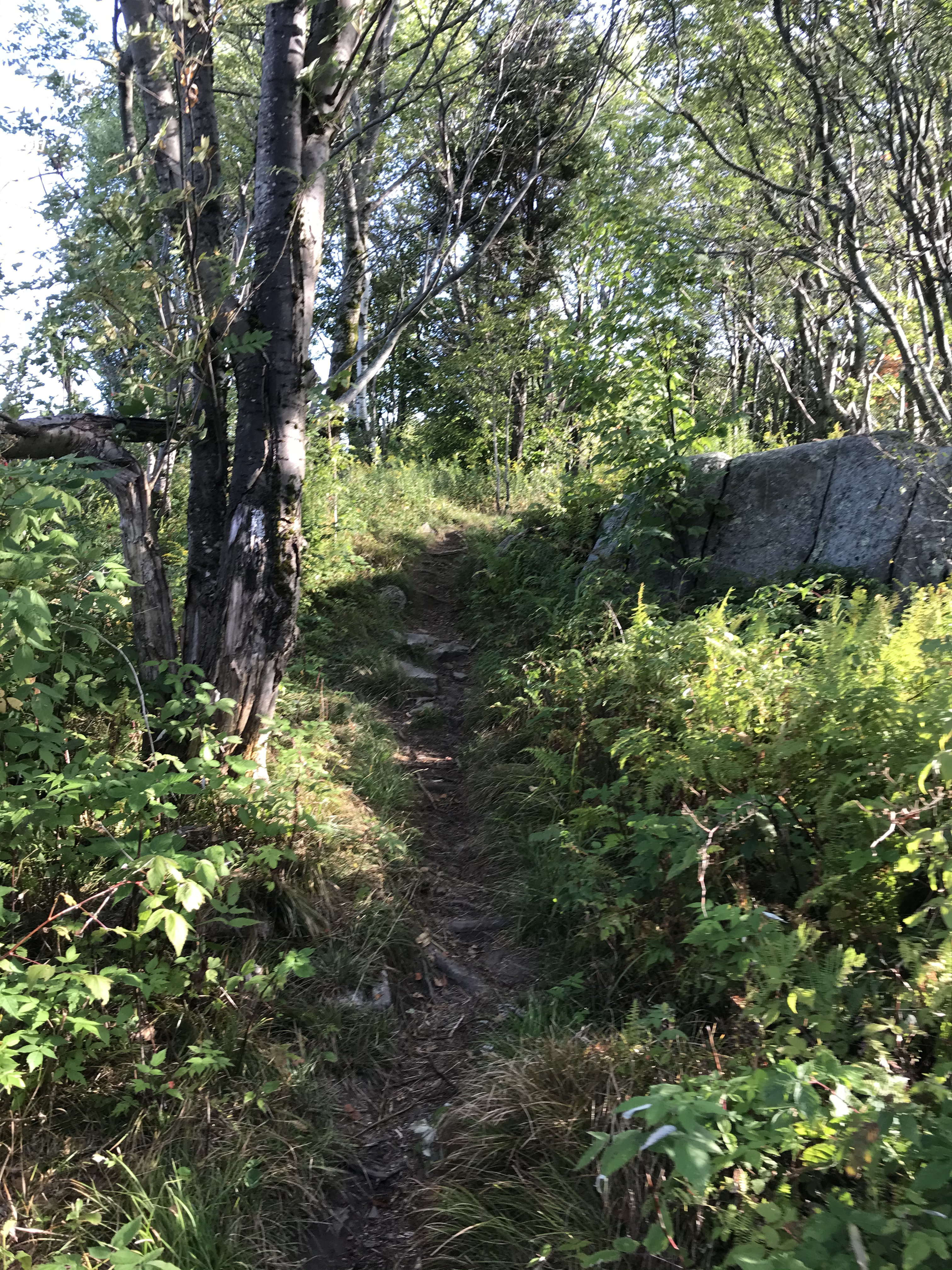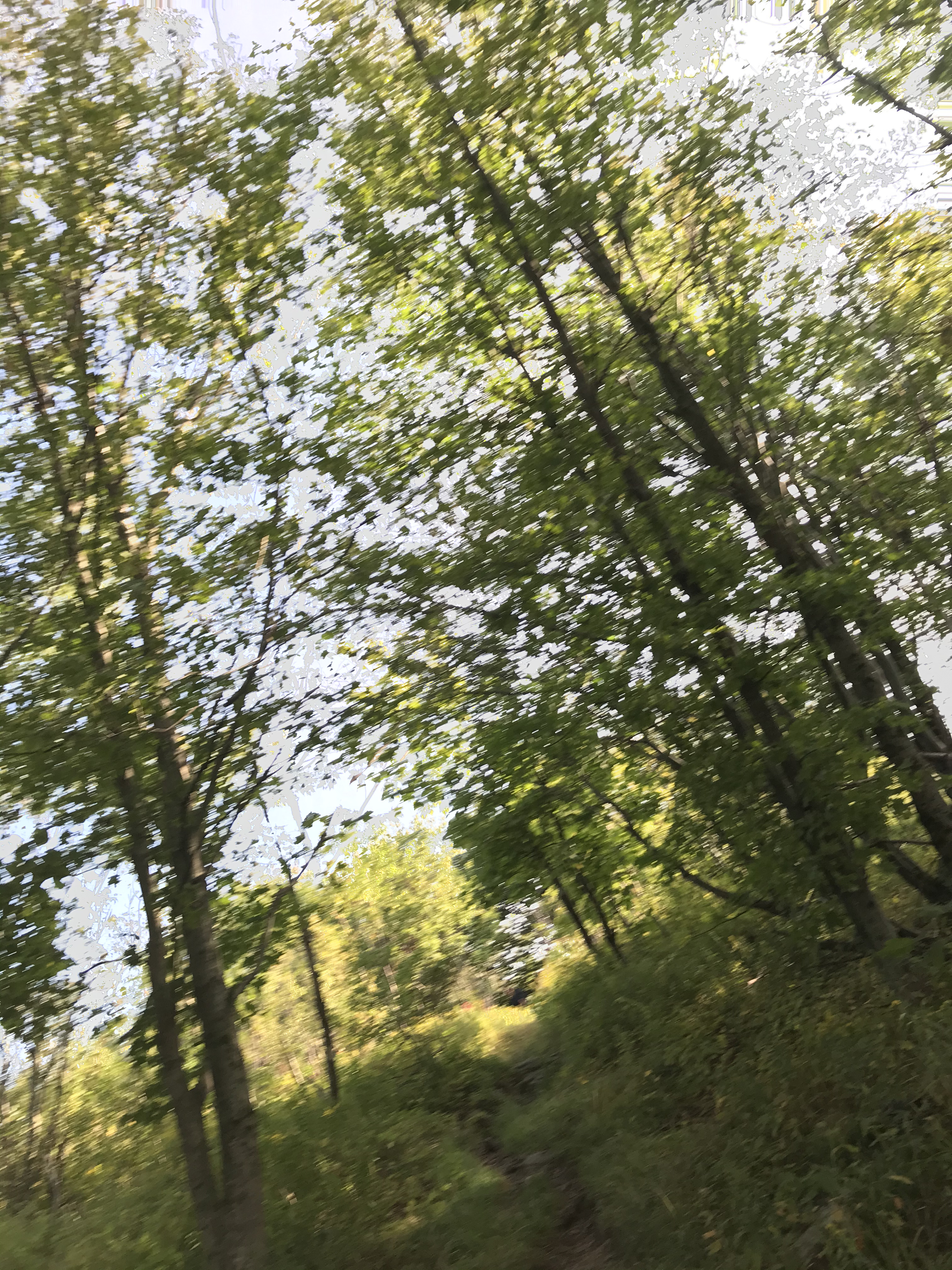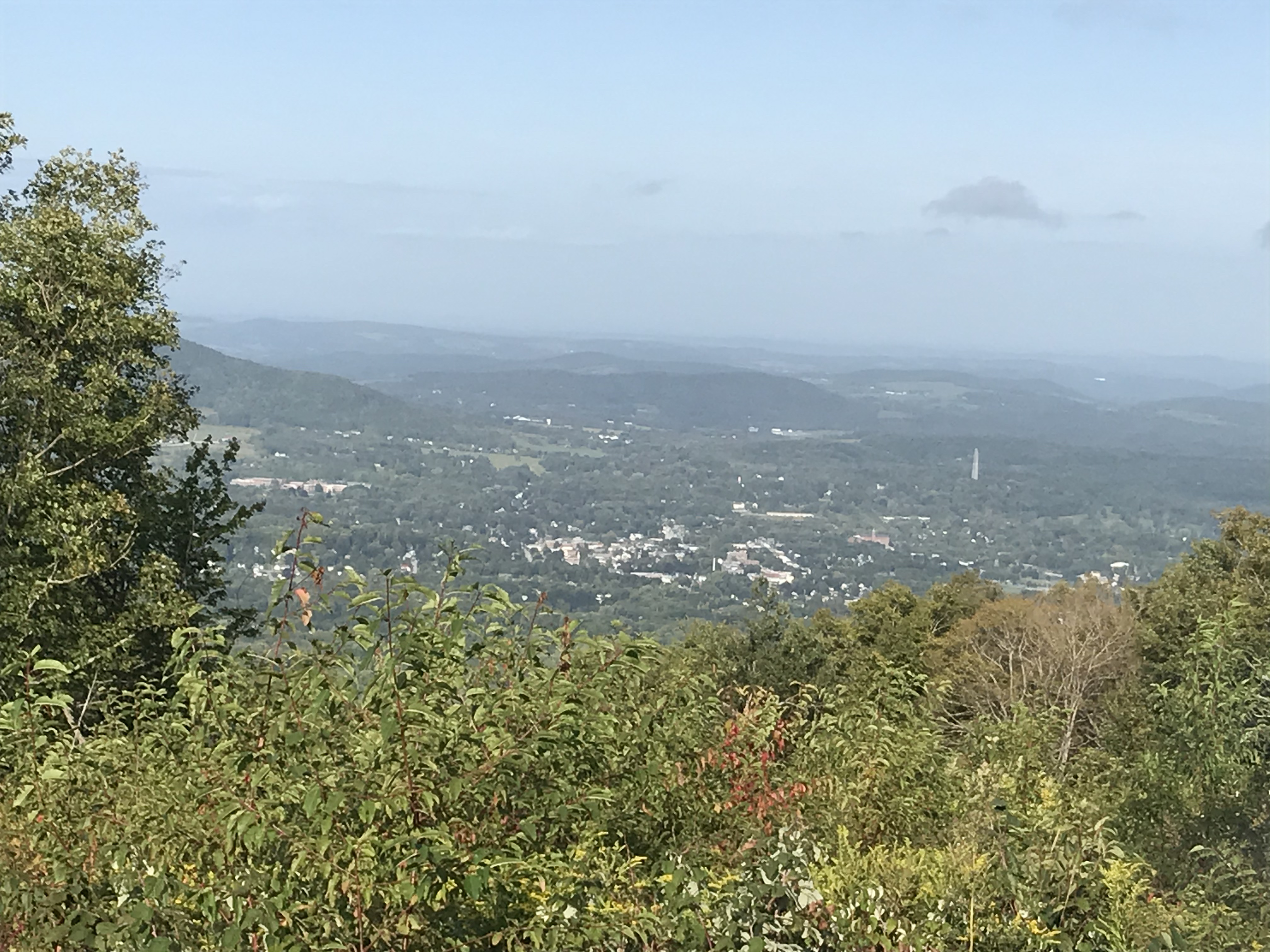 This hike started on one of my favorite places on the LT – Harmon Hill. It’s a bit strange to say because there is nothing dramatic about the spot, and it doesn’t require a gnarly climb to get to it. It’s just an open, grassy spot on the ridge above Bennington from which you can see the obelisk-style monument to the Battle of Bennington, which was actually fought 10 miles away in NY. (The American side defeated the British there in 1777, led by John Stark and Seth Warner, the latter who led a detachment of Green Mountain Boys. Their names are evident in shelters and mountaintops on the LT). In any case it’s a peaceful spot and there are not a lot of open areas with a view on the LT that are not craggy, stony peaks.