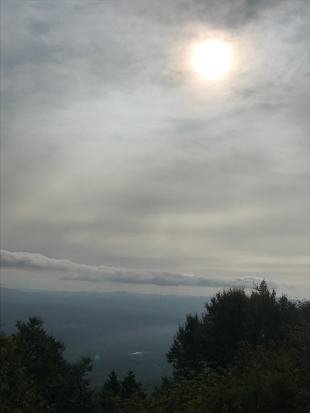 This stretch is an exact replica of a practice , or “shakedown” hike as they say, that Chris and I did about a week before departure. Just to see we have the right gear, everything works, etc. Starts out with a nice little 500 foot climb to Styles Peak, where Cliff and I stealth camped in ’18 and which has a nice ledge looking mostly east with the town of Londonderry in the valley below and Magic Mountain in the distance. This morning, however, the sky was hazy and it’s a safe bet it was from what my Dad calls “the Hades that is 3,000 miles west.” It’s a hell of a thing, no? That our day in Vermont can be darkened by fires so far away? Can’t imagine what it’s like to be in the middle of it over there.
