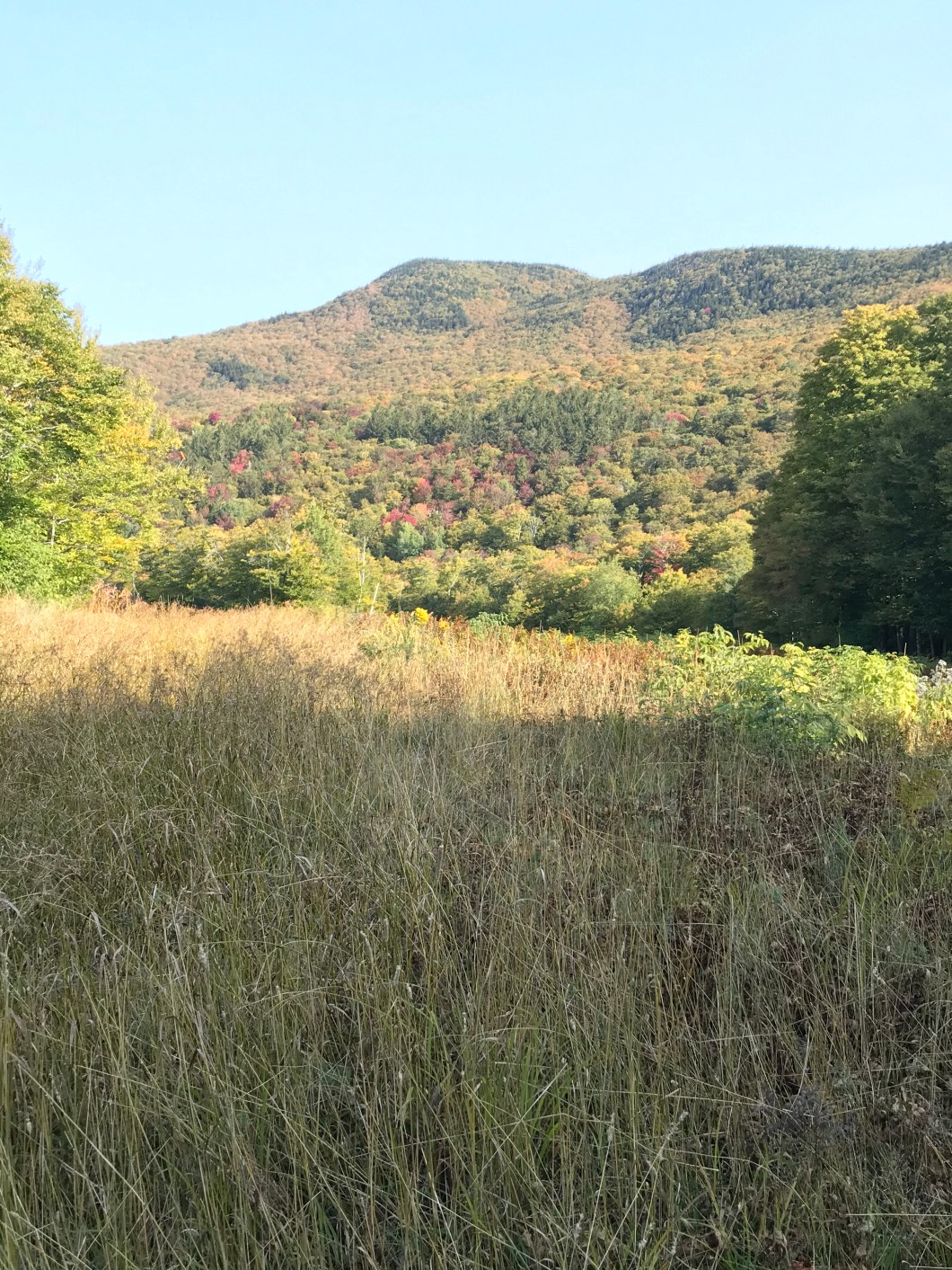 So it was a GOOD thing that we had about 600 feet up Worth Mountain, which, although had no view, brings its own character in gnarled beech and butternut trees in fern beds. In any case, there were great views when we descended to the top of the chair of Middlebury Snow Bowl. As you can see in pics, autumn is starting to show up, but hasn’t erupted in that VT explosion of color quite yet.