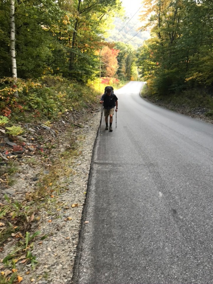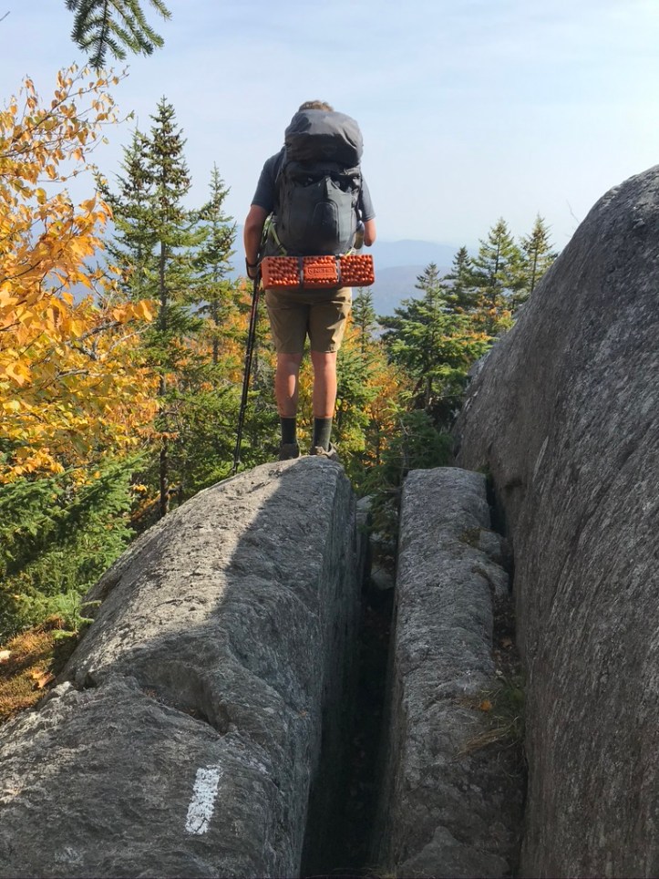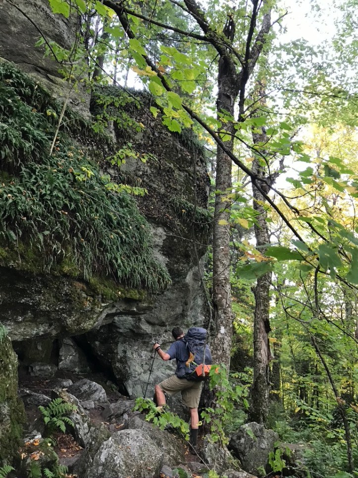 We found a spot about 2 miles in from Bolton Notch Road – there aren’t really any established stealth sites yet on this portion because the LT route here is still pretty new, but pitching where no one has before can actually make for a softer sleeping surface if you choose wisely. There was a porcupine waddling around while we made dinner, and I’ll just note here that this seems like a banner year for them, as well as chipmunks. It was warm enough to sleep without the fly on the tent, which means looking up at the trees and stars. Better than burrowing your face in your stinky bag cuz it’s cold out!