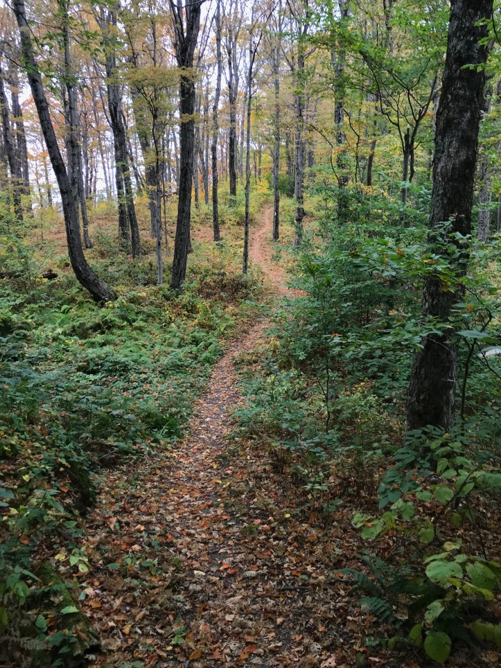 One of the bigger up days, as we had to come most of the way up from the valley floor. There is nothing particularly difficult about the climb – it’s just 7 miles of fairly continuous ascent, and the top of Bolton is wooded, so… But there is a shelf ledge called Harrington’s View at about 2,600 ft that is one of my fave lunch spots on the LT. It looks east for the most part but off to the left (north) you can see Mansfield – obviously the next big target on the map.