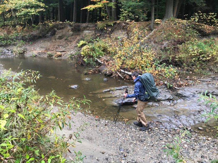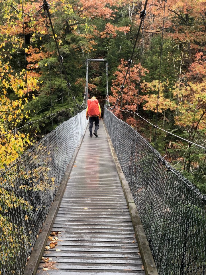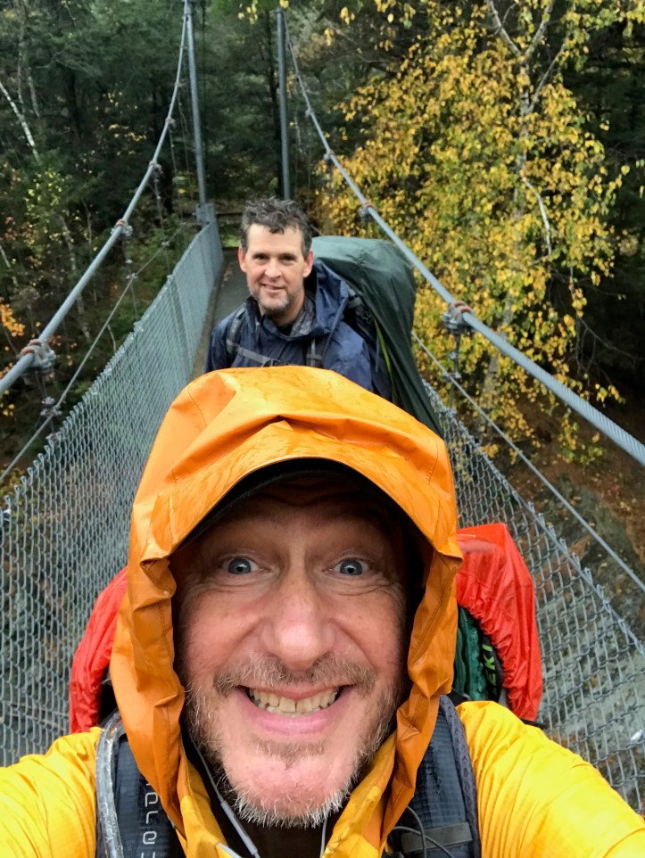 Then there’s the footwear issue. If you look at the entries in this blog for 2018, you’ll see that my son and I had heavy leather boots and that we hiked in a lot of rain and mud (in fact we hiked in streams which is what the trail turns into if it rains hard enough). It takes a while for boots to soak through, but once they do, they will not be dry again for a very long time. You will be sliding your feet into high humidity for days on end even after a few sunny days. The solution for many folks is to wear lightweight hiking shoes – either trail runners or just light boots that are mostly rubber and mesh. They get wet AND dry quickly. So I bought a pair of Oboz and did some practice hikes in them, but I was just not down with the low ankle support and, more importantly, feeling every bump in the road in the form of rocks, roots and what have you. So I left the Oboz at home and laced up my old school Salomons that had already hiked the LT and a lot more. In any case, it’s one of those personal preference things. Chris M wore the Oboz and came away unscathed. So far.