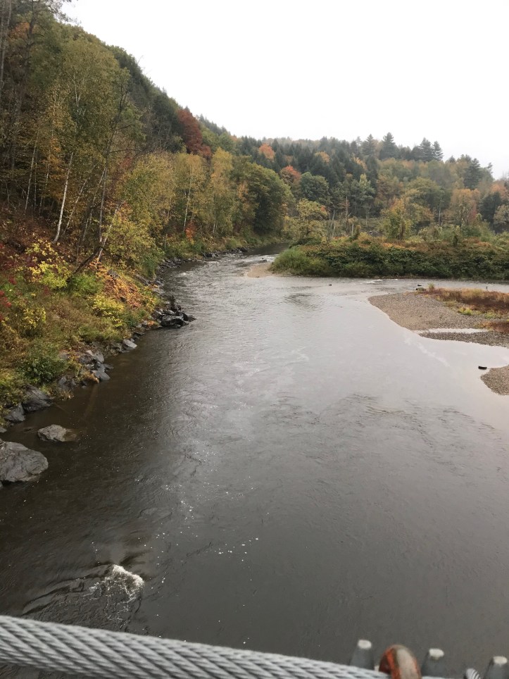 In any case, thanks mainly to Laraway Mountain, it was another big elevation day. Great views from the lookout up there but not today. Chris M’s phone officially died on Laraway, so fewer pics to choose from from here on. We lucked out at Lamoille River because we did not have to make the high water detour, and due to our early bird start, we got to Corliss Camp with time to spare and did not have to pitch tents. 37 miles to Canada…